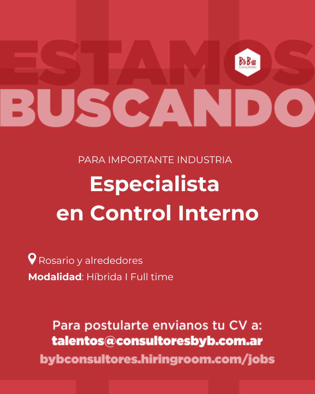 🙌🏼 Para importante industria seleccionamos Especialista en Control Interno.