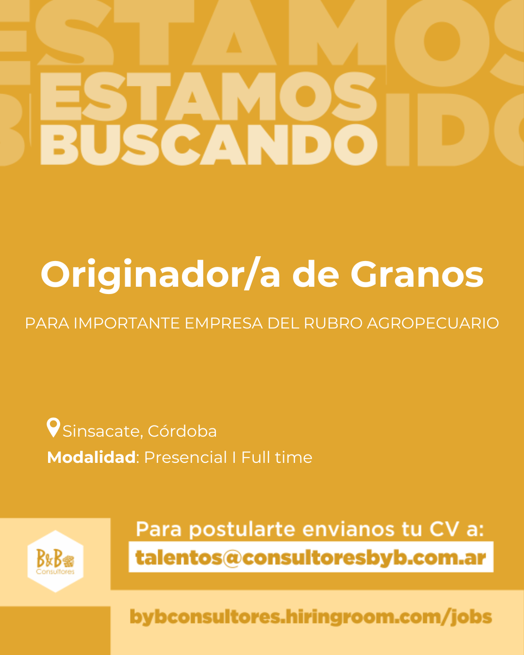 📣 ¡Atención! Para empresa del sector agropecuario seleccionamos: Originador/a de Granos.