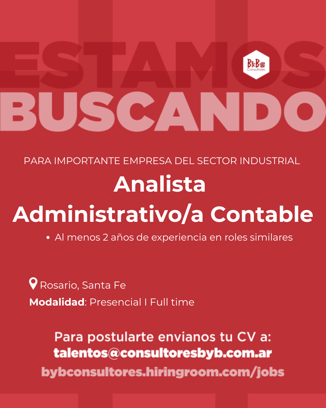 🔹Acreditar experiencia +2 años en roles administrativos/contables, preferentemente en empresas industriales o de producción.
