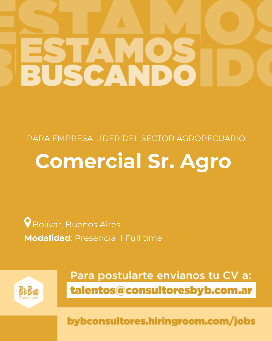 ✔Experiencia mínima de 3 años en roles comerciales Sr/Ssr dentro del negocio agro (excluyente).
