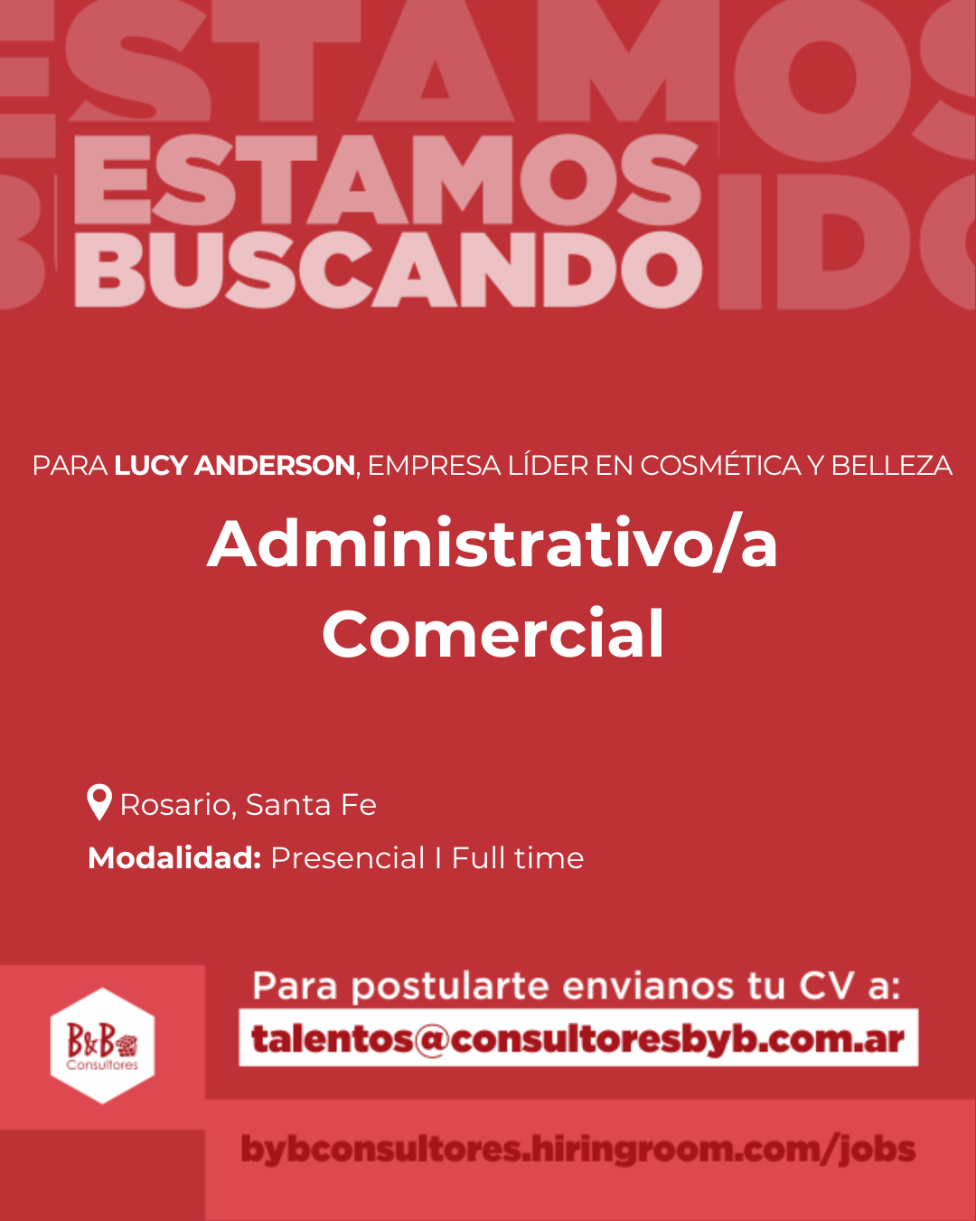 Para Lucy Anderson, empresa con amplia trayectoria en el rubro de cosmética y belleza, seleccionamos Administrativo/a Comercial.